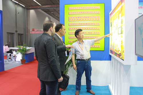 為了參加好此次展會,院里非常重視,提早安排,精心準備,對展品要求精益求精,機械廠以出口型精品柱塞泵作為展品,外觀漂亮,整體搬運到場,減少了運輸途中和現場剮蹭,保證了展出效果;干法制粉,是我院本屆工業展上主推項目之一,節能降耗是該工藝最大的優勢,與傳統的濕法制粉工藝相比,干法制粉工藝減少了濕法工藝的球磨制漿、噴霧造粒等環節,省去了球磨機、噴霧塔等設備,明顯的節約了成本,節能減排效果顯著。我院研發設計的造粒機,粉料的顆粒級配符合半干壓陶瓷成型的要求, 并且具備流動性好等特點。現場除了設置多幅大型展板配合三維動畫視頻,項目專家全程跟蹤現場咨詢,收到了良好的預期效果。